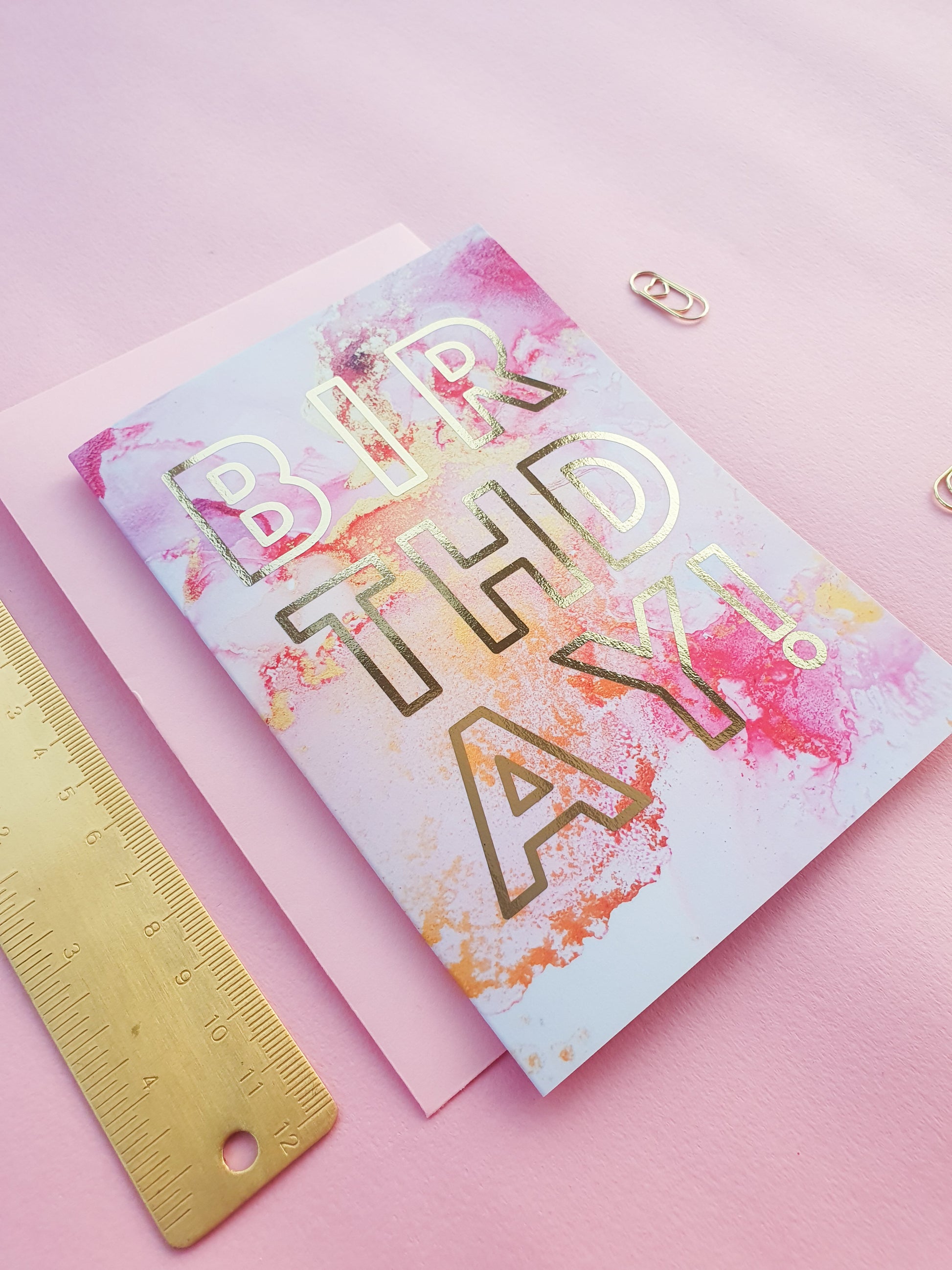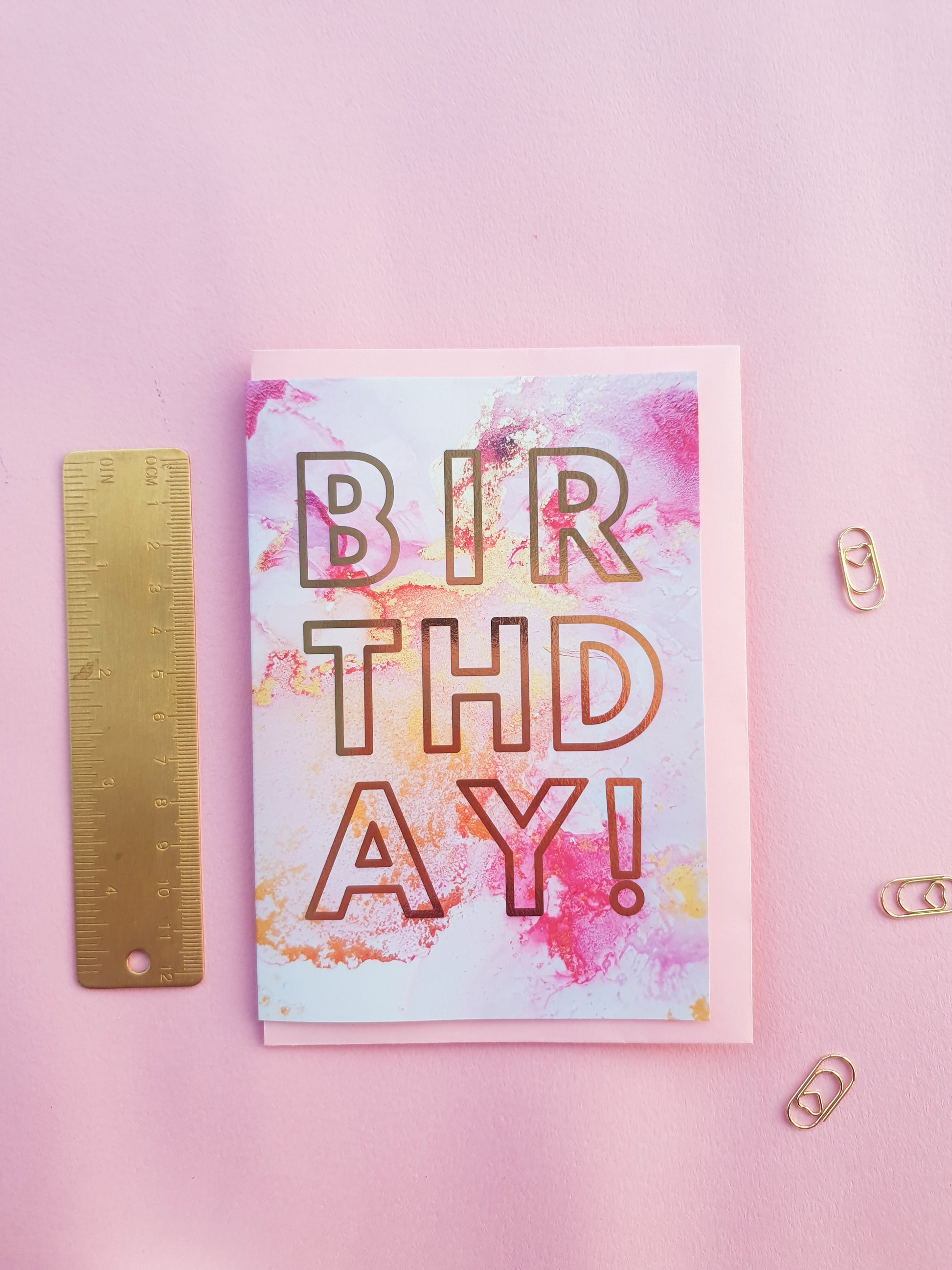 Happy Birthday - Greeting Card - Pink Marble - Gold Foiling - A6